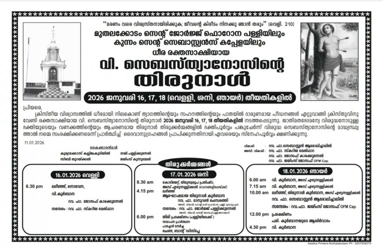 കുന്നംകപ്പേളയിലെ തിരുനാൾ 2026 ജനുവരി 16,17,18 16/01/2026
